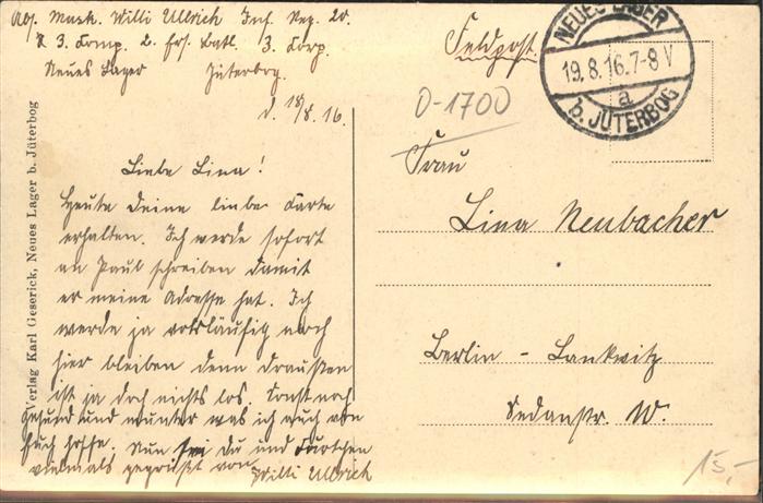41405554 Jueterbog Brandenburg Neues Lager Neue Wohngebaeude Pavillon Milchhalle Feldpost postalisch gelaufen Erhaltung siehe scans Alte Ansichtskarte Postkarte alte Postkarte hz_F Katcode 11110012072169