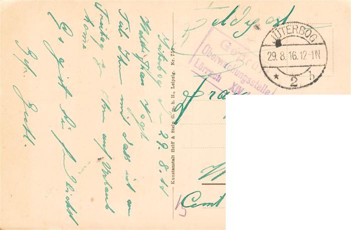 73938930 alte Postkarte Jueterbog Damm Tor Neumarkt Tor Marktplatz Rathaus Zinnser Tor Feldpost postalisch gelaufen Erhaltung siehe scans [WerneD78] KatCode: 11110012072169