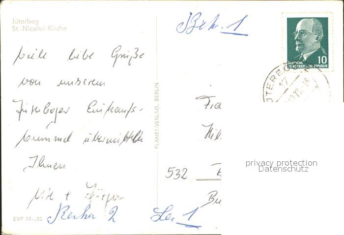 71927957 alte Postkarte Jueterbog St. Nicolai-Kirche postalisch gelaufen Erhaltung siehe scans KatCode: 11110012072169