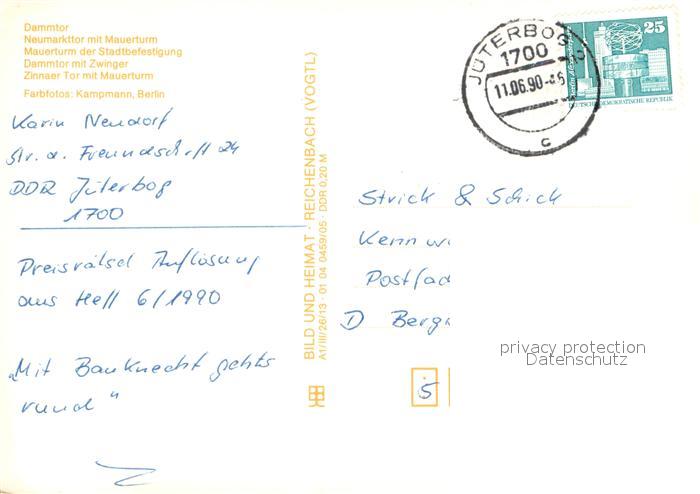 73656115 alte Postkarte Jueterbog Tore und Tuerme der Stadt postalisch gelaufen Erhaltung siehe scans [FriedD77] KatCode: 11110012072169