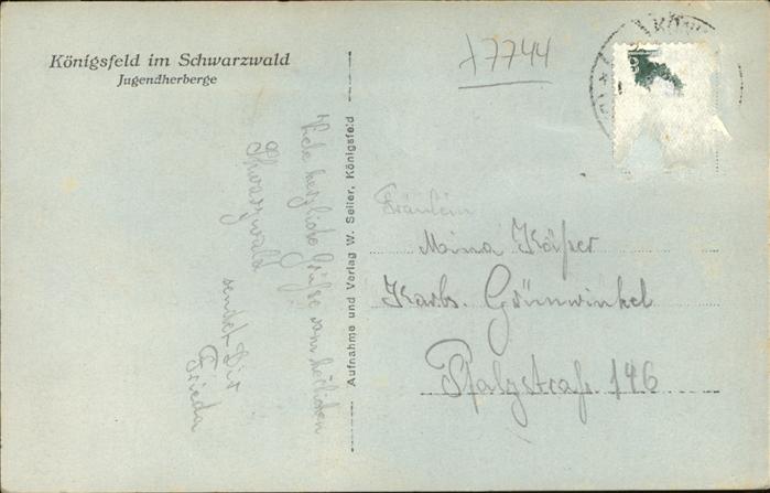 alte Postkarte Jugendherberge Youth Hostel Koenigsfeld Schwarzwald Ofen Uhr Geschirr postalisch gelaufen Erhaltung siehe scans