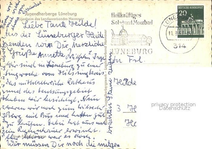 alte Postkarte Jugendherberge Youth Hostel Lueneburg Ortsansichten postalisch gelaufen Erhaltung siehe scans
