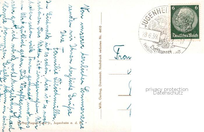 73809557 alte Postkarte Jugenheim Seeheim-Jugenheim Blick auf Kirche mit Schloss postalisch gelaufen Erhaltung siehe scans [WerneD78] KatCode: 11110006432022
