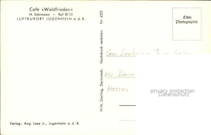 32571023 Jugenheim Seeheim-Jugenheim Cafe Waldfrieden postalisch nicht gelaufen Erhaltung siehe scans [WerneD78] KatCode: 11110006432022