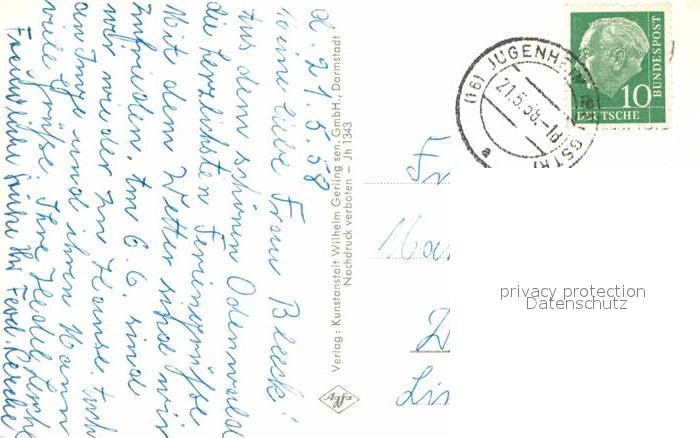 72818466 alte Postkarte Jugenheim Seeheim-Jugenheim Goldenes Kreuz Friedensbrunnen Bluetezeit Schloss Heiligenberg Rosen postalisch gelaufen Erhaltung siehe scans [FriedD77] KatCode: 11110006432022