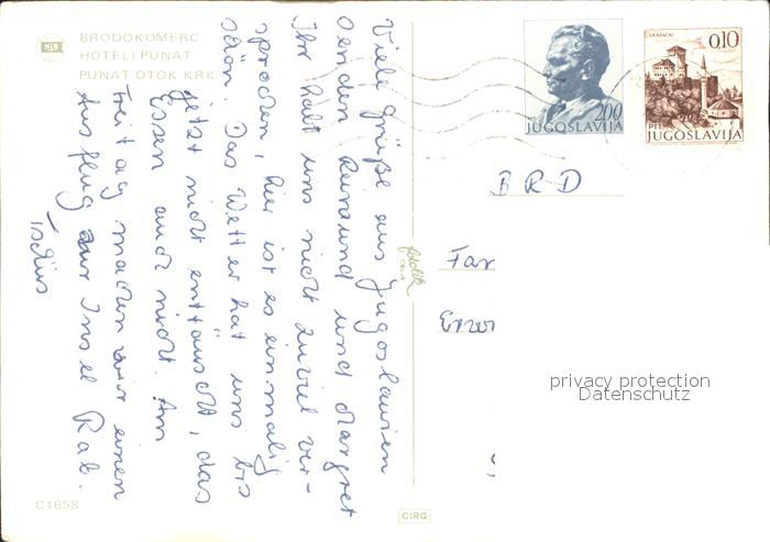 old postcard Jugoslawien Yugoslavie Brodokomerc Hotel Punat postalisch gelaufen Erhaltung siehe scans