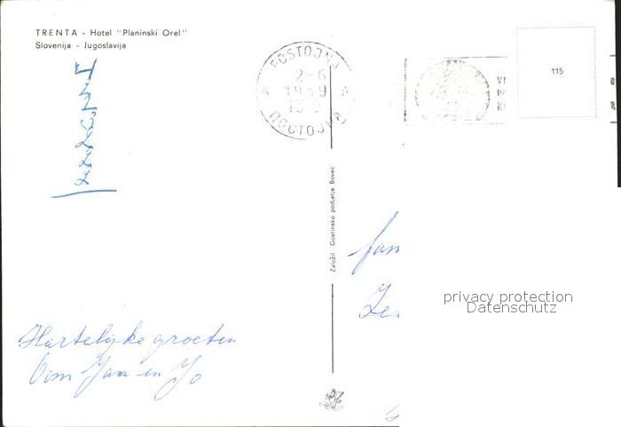 old postcard Jugoslawien Yugoslavie Trenta Hotel Planinski Orel postalisch gelaufen