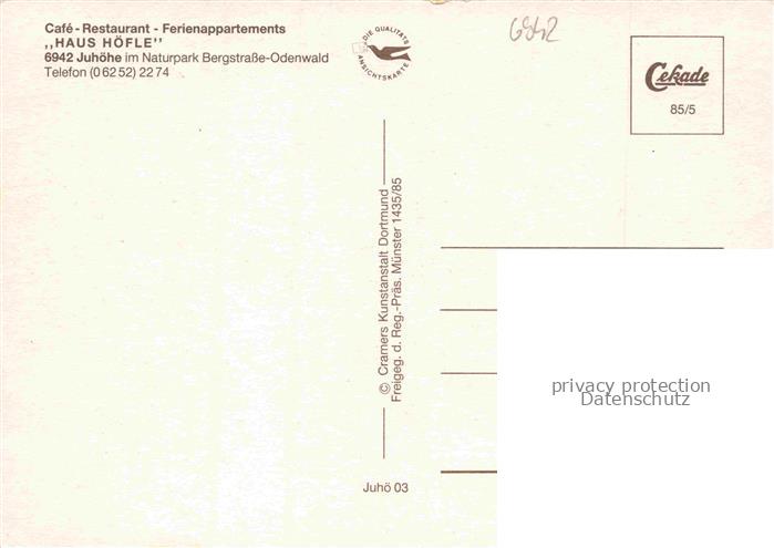 74035781 Juhoehe Moerlenbach Bergstrasse Hessen Haus Hoefle im Naturpark Bergstrasse Odenwald postalisch nicht gelaufen Fliegeraufnahme Erhaltung siehe scans [WerneD78] Fliegeraufnahme Wern Katcode 11110006431017