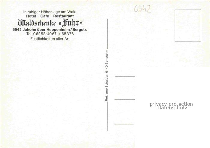 74048114 Juhoehe Moerlenbach Bergstrasse Hessen Hotel Café Restaurant Waldschenke Fuhr postalisch nicht gelaufen Erhaltung siehe scans [FriedD77] Frie Katcode 11110006431017