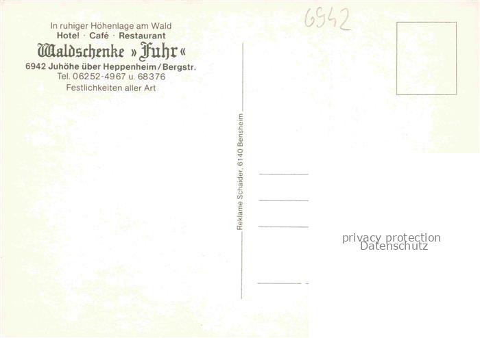74048103 Juhoehe Moerlenbach Bergstrasse Hessen Hotel Café Restaurant Waldschenke Fuhr postalisch nicht gelaufen Erhaltung siehe scans [FriedD77] Frie Katcode 11110006431017