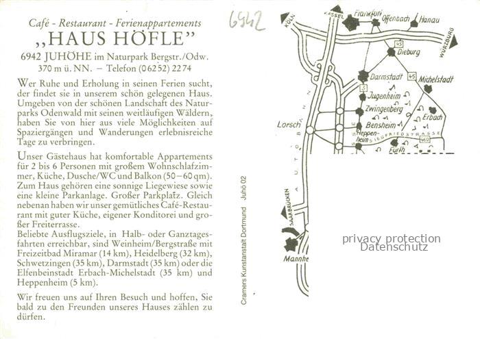 74048048 Juhoehe Moerlenbach Bergstrasse Hessen Pension Café Restaurant Haus Hoefle postalisch nicht gelaufen Werbekarte (keine Postkarte) Erhaltung siehe scans [FriedD77] Werbekarte (keine Postkarte) Frie Katcode 11110006431017