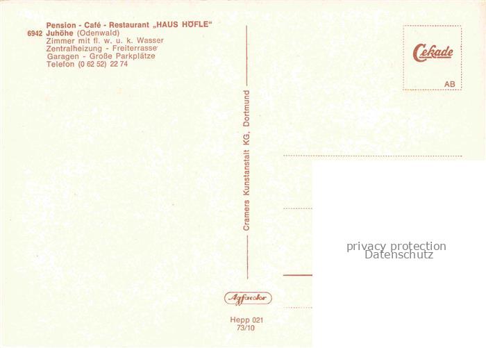 74048044 Juhoehe Moerlenbach Bergstrasse Hessen Pension Café Restaurant Haus Hoefle postalisch nicht gelaufen Erhaltung siehe scans [FriedD77] Frie Katcode 11110006431017