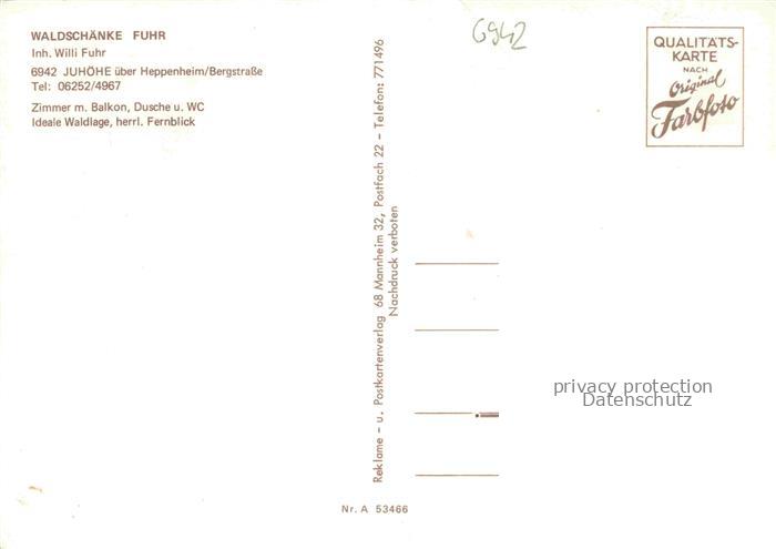 74048052 Juhoehe Moerlenbach Bergstrasse Hessen Waldschaenke Fuhr Gastraeume postalisch nicht gelaufen Erhaltung siehe scans [FriedD77] Frie Katcode 11110006431017