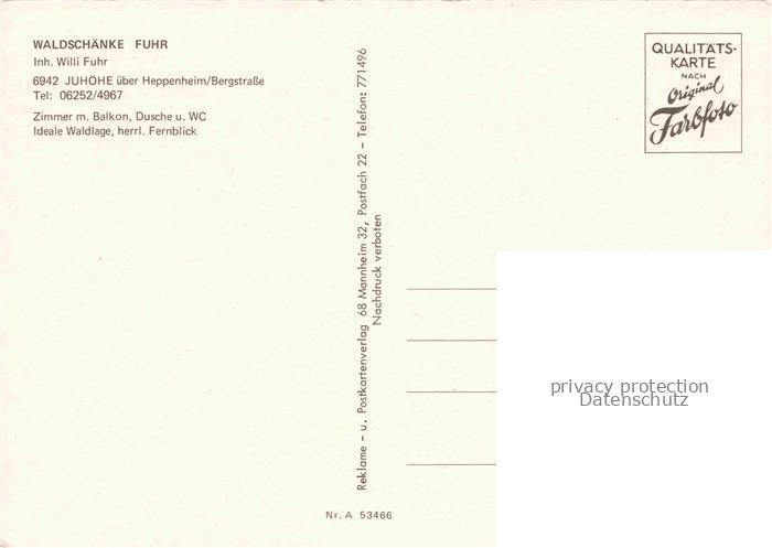 74048045 Juhoehe Moerlenbach Bergstrasse Hessen Waldschaenke Fuhr Gastraeume postalisch nicht gelaufen Erhaltung siehe scans [FriedD77] Frie Katcode 11110006431017