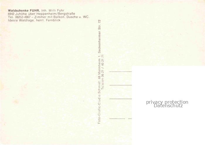74048080 Juhoehe Moerlenbach Bergstrasse Hessen Waldschenke Fuhr postalisch nicht gelaufen Erhaltung siehe scans [FriedD77] Frie Katcode 11110006431017