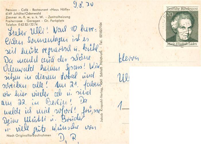 73878844 alte Postkarte Juhoehe Pension Cafe Restaurant Hoefle Gastraeume postalisch gelaufen Erhaltung siehe scans [WerneD78] KatCode: 11110006431017