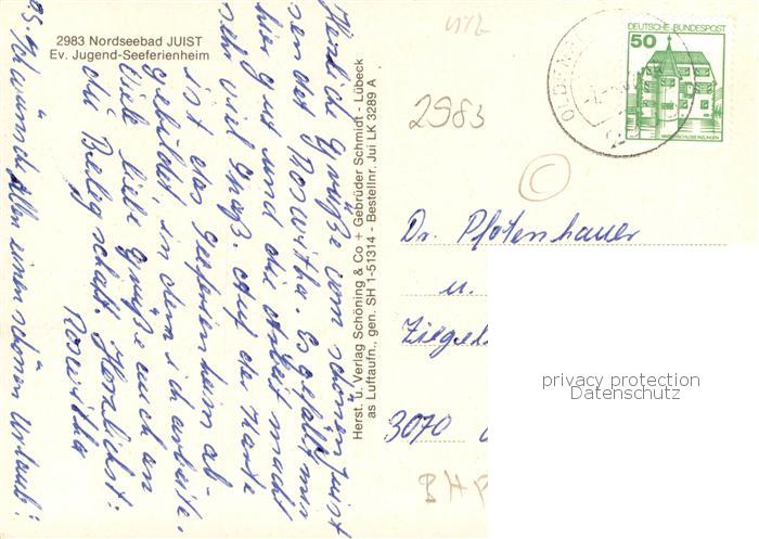 73779023 alte Postkarte Juist Nordseebad Ev Jugend Seeferienheim Fliegeraufnahme postalisch gelaufen Erhaltung siehe scans [WerneD78] KatCode: 11110003452013