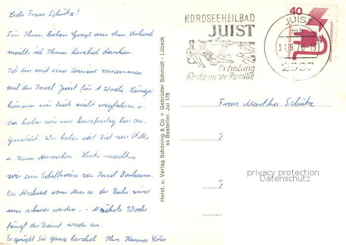 73715904 alte Postkarte Juist Nordseebad Faehrschiff MS Frisia VI Kurplatz Inselbahn Pferdebus Strand Fliegeraufnahme postalisch gelaufen Erhaltung siehe scans [FriedD77] KatCode: 11110003452013