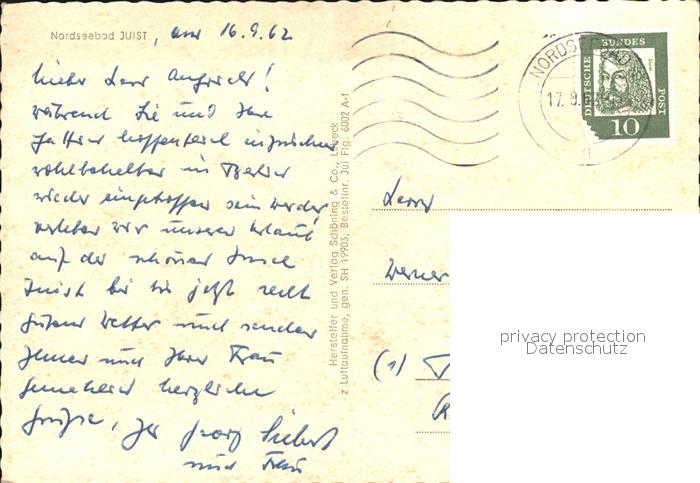 72577575 alte Postkarte Juist Nordseebad Fliegeraufnahme postalisch gelaufen Erhaltung siehe scans [FriedD77] KatCode: 11110003452013