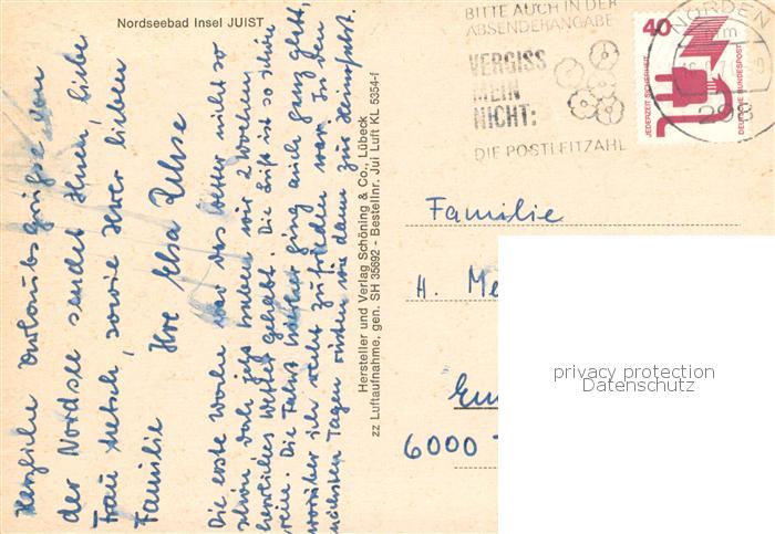 73780466 alte Postkarte Juist Nordseebad Fliegeraufnahme postalisch gelaufen Erhaltung siehe scans [WerneD78] KatCode: 11110003452013