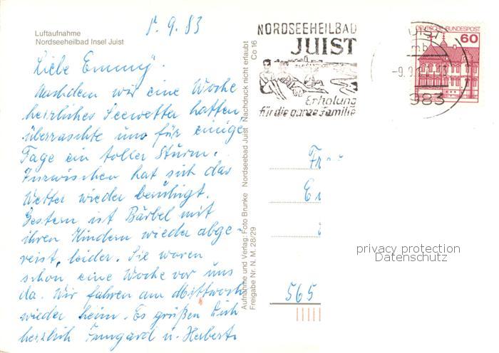 73778944 alte Postkarte Juist Nordseebad Fliegeraufnahme postalisch gelaufen Erhaltung siehe scans [WerneD78] KatCode: 11110003452013