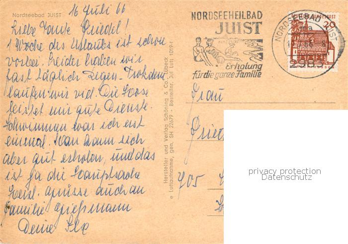 73778941 alte Postkarte Juist Nordseebad Fliegeraufnahme postalisch gelaufen Erhaltung siehe scans [WerneD78] KatCode: 11110003452013
