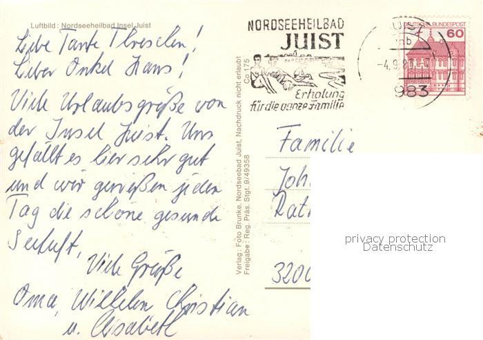73778914 alte Postkarte Juist Nordseebad Fliegeraufnahme postalisch gelaufen Erhaltung siehe scans [WerneD78] KatCode: 11110003452013