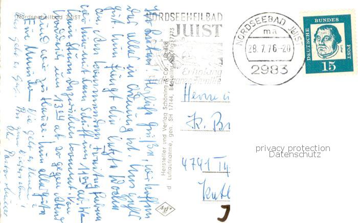 73761804 alte Postkarte Juist Nordseebad Fliegeraufnahme postalisch gelaufen Erhaltung siehe scans [FriedD77] KatCode: 11110003452013