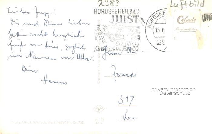73690380 alte Postkarte Juist Nordseebad Fliegeraufnahme postalisch gelaufen Erhaltung siehe scans [WerneD78] KatCode: 11110003452013