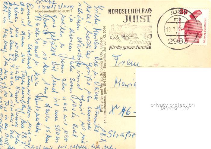 73294391 alte Postkarte Juist Nordseebad Fliegeraufnahme postalisch gelaufen Erhaltung siehe scans [FriedD77] KatCode: 11110003452013