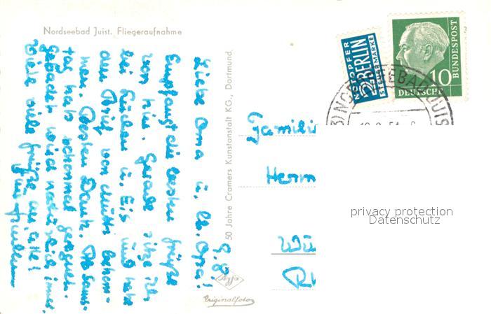 72974388 alte Postkarte Juist Nordseebad Fliegeraufnahme postalisch gelaufen Erhaltung siehe scans [FriedD77] KatCode: 11110003452013