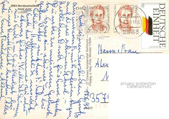 72856815 alte Postkarte Juist Nordseebad Fliegeraufnahme postalisch gelaufen Erhaltung siehe scans [AndreD76] KatCode: 11110003452013