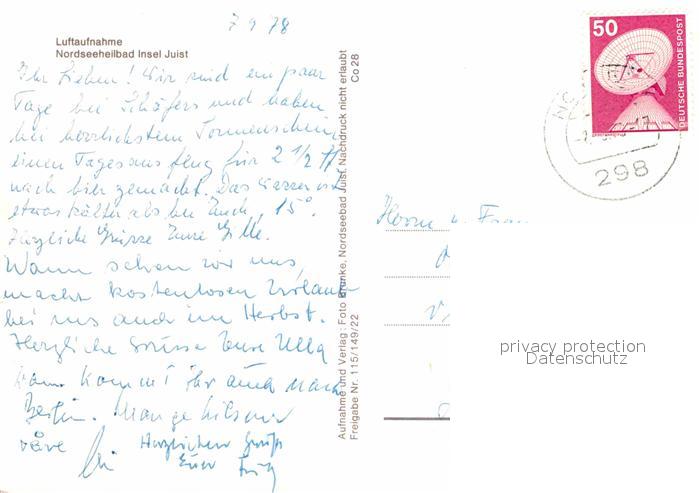 72793169 alte Postkarte Juist Nordseebad Fliegeraufnahme ganze Insel postalisch gelaufen Erhaltung siehe scans [LiesaD40] KatCode: 11110003452013