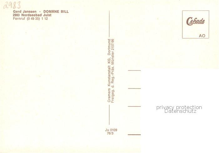 73778924 Juist Nordseebad Gerd Janssen Domaene Bill Fliegeraufnahme postalisch nicht gelaufen Erhaltung siehe scans [WerneD78] KatCode: 11110003452013