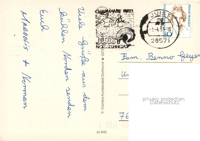73715700 alte Postkarte Juist Nordseebad Inseldorf Luftbild Strandpromenade Pferdetaxi Historisches Warmbad Faehrschiff postalisch gelaufen Erhaltung siehe scans [FriedD77] KatCode: 11110003452013