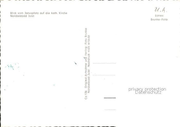 72547172 Juist Nordseebad Janusplatz mit Kath Kirche postalisch nicht gelaufen Erhaltung siehe scans [WerneD78 kv017box] KatCode: 11110003452013