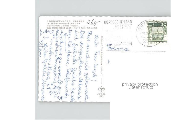 41619730 alte Postkarte Juist Nordseebad Nordseehotel Freese postalisch gelaufen Erhaltung siehe scans KatCode: 11110003452013