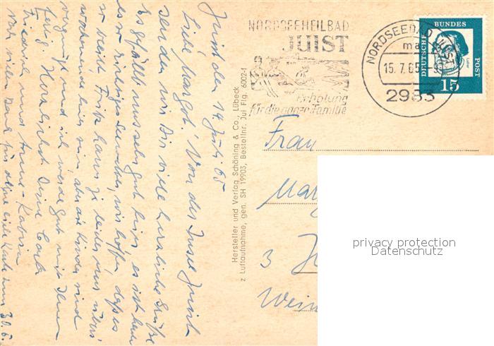 73294392 alte Postkarte Juist Nordseebad Nordseeinsel Fliegeraufnahme postalisch gelaufen Erhaltung siehe scans [FriedD77] KatCode: 11110003452013