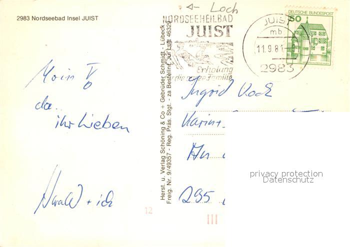 72990494 alte Postkarte Juist Nordseebad Nordseeinsel Fliegeraufnahme postalisch gelaufen Erhaltung siehe scans [FriedD77] KatCode: 11110003452013
