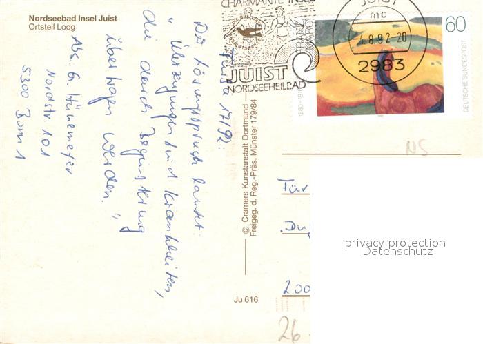73715637 alte Postkarte Juist Nordseebad Ortsteil Loog Nordseeinsel postalisch gelaufen Fliegeraufnahme Erhaltung siehe scans [FriedD77] KatCode: 11110003452013