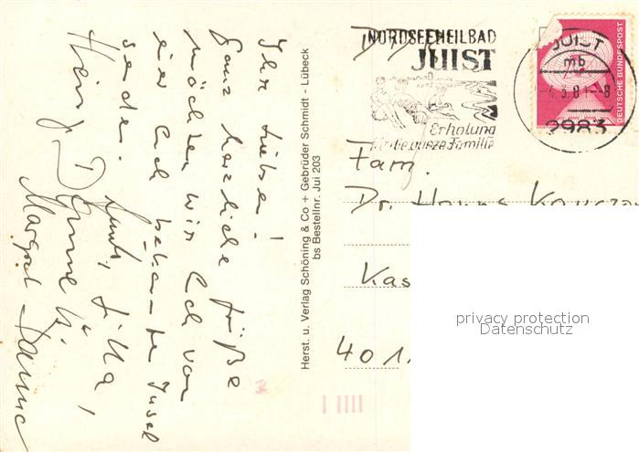73715516 alte Postkarte Juist Nordseebad Perle der Nordsee Fliegeraufnahme Kirche Sturmklause Anleger Faehre Kurhaus Strandhotel postalisch gelaufen Erhaltung siehe scans [FriedD77] KatCode: 11110003452013