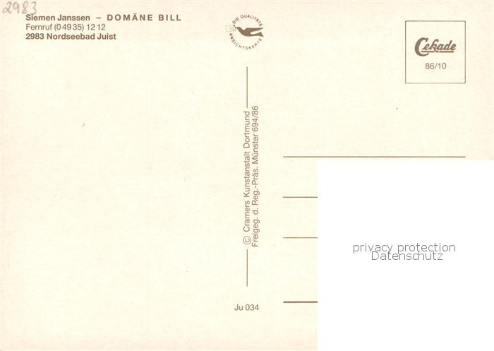 73779028 Juist Nordseebad se Siemen Janssen Domaene Bill Fliegeraufnahme postalisch nicht gelaufen Erhaltung siehe scans [WerneD78] KatCode: 11110003452013