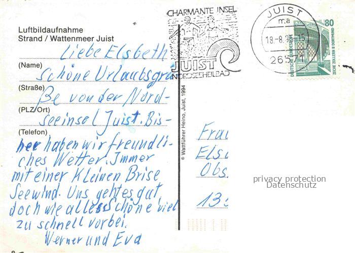 74043573 alte Postkarte JUIST Nordseebad Strand Wattenmeer postalisch gelaufen Fliegeraufnahme Erhaltung siehe scans [FriedD77] KatCode: 11110003452013