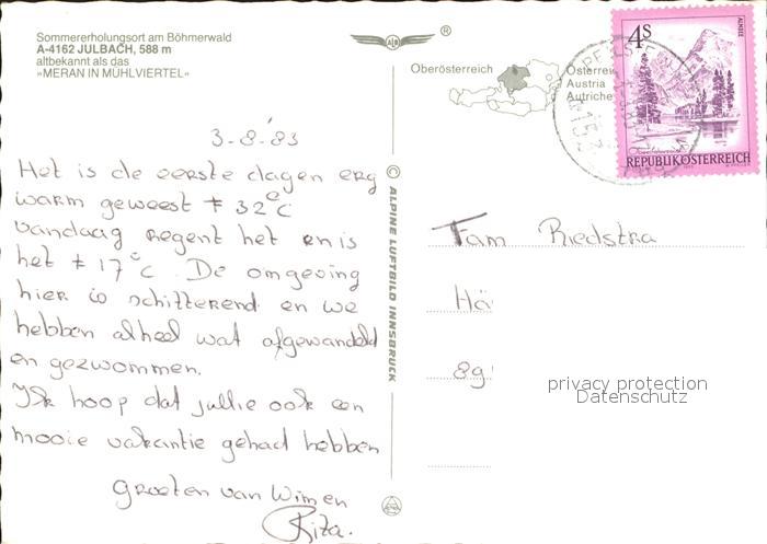 72237267 alte Postkarte Julbach Oberoesterreich Fliegeraufnahme postalisch gelaufen Erhaltung siehe scans KatCode: 11390313041313