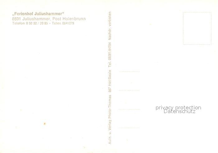 73646482 Juliushammer Wunsiedel Ferienhof Juliushammer Teich postalisch nicht gelaufen Erhaltung siehe scans [FriedD77] KatCode: 11110009479169