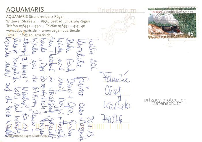 73089327 alte Postkarte Juliusruh Ruegen Aquamaris Strandresidenz postalisch gelaufen Erhaltung siehe scans [KathaD81] KatCode: 11110013061006