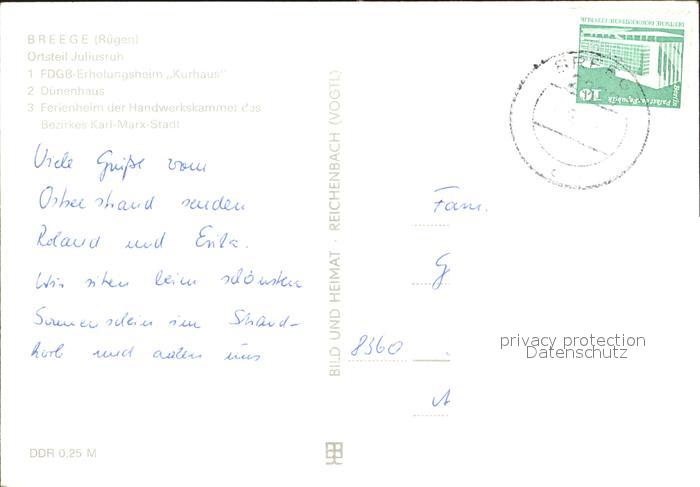 72343545 alte Postkarte Juliusruh Ruegen FDGB Erholungsheim Kurhaus Duenenhaus Strand Ferienheim Handwerkskammer Bezirk Karl Marx Stadt postalisch gelaufen Erhaltung siehe scans KatCode: 11110013061006