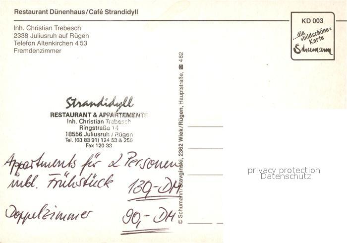 73084486 Juliusruh Ruegen Restaurant Duenenhaus Cafe Strandidyll postalisch nicht gelaufen Erhaltung siehe scans [FriedD77] KatCode: 11110013061006