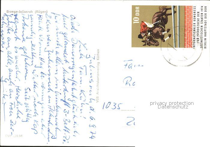 72026950 alte Postkarte Juliusruh Ruegen Strand postalisch gelaufen Erhaltung siehe scans KatCode: 11110013061006