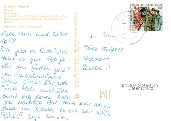 73061277 alte Postkarte Juliusruh Ruegen Strand Parkanlage Ferienheim Sendemasten Strand postalisch gelaufen Erhaltung siehe scans [FriedD77] KatCode: 11110013061006